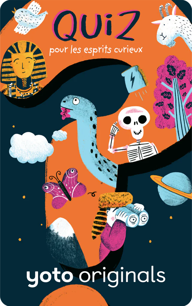 Quiz pour les esprits curieux : Un peu de remue-méninge avec cette carte pour tester ses connaissances sur des sujets passionnants comme les animaux, l’espace, la musique, le sport… Seul(e) ou accompagné(e) de toute la famille, qui deviendra incollable en culture générale ?